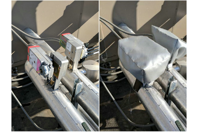 户外防护套保温前后对比